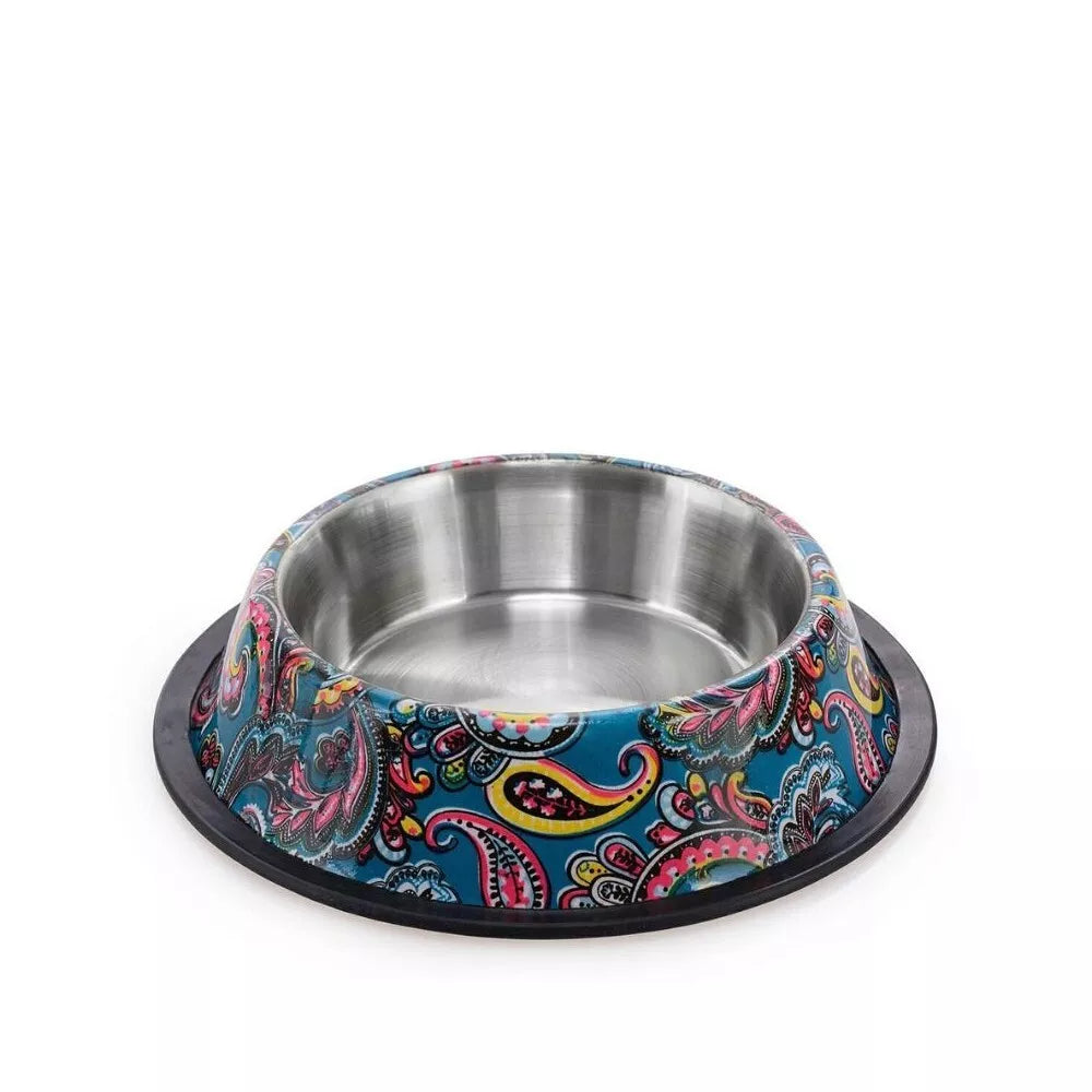 Šio dubenėlio pagrindas – tvirtas nerūdijantis plienas. Ši medžiaga yra itin vertinama dėl savo higieniškumo ir atsparumo korozijai. Nerūdijantis plienas nesugeria kvapų, todėl kiekvienas maitinimo kartas bus šviežias ir malonus augintiniui. Jis atsparus įbrėžimams, todėl išlaiko savo estetinę išvaizdą ilgą laiką, net ir intensyviai naudojant. Tai reiškia, kad galite būti ramūs dėl savo augintinio sveikatos, nes dubenėlis nebus jautrus bakterijų veisimuisi.