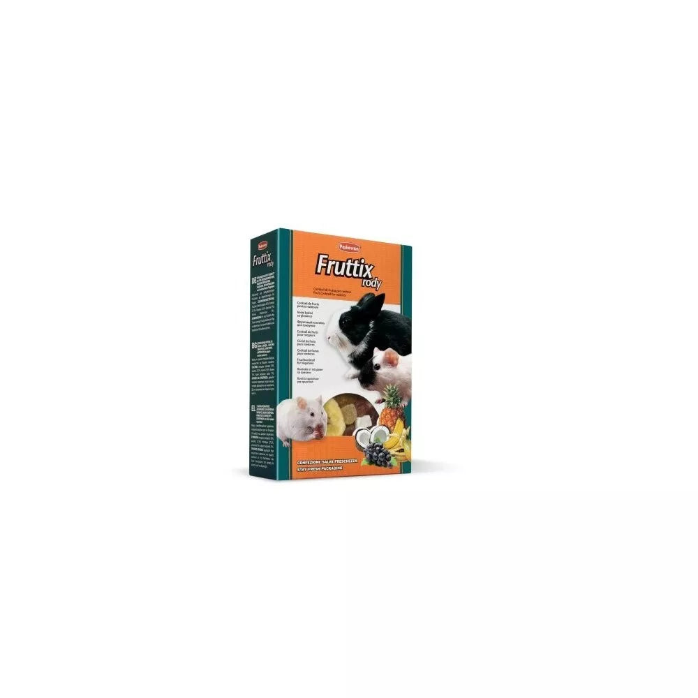 Fruttix Rody mišinio pagrindą sudaro kruopščiai atrinkti ir natūraliai džiovinti vaisiai bei riešutai, kurių sudėtyje gausu natūralių skaidulų, vitaminų ir mineralų. Sudėtis apima saldžias vynuoges (35%), egzotišką ananasą (27,5%), gaivią papają (27,5%) ir natūralius bananus (3%), papildytus traškiais kokosų riešutais (7%). Šie natūralūs komponentai yra ne tik skanūs, bet ir prisideda prie augintinio energijos lygio palaikymo ir bendros savijautos gerinimo. Dėl džiovinimo proceso vaisiai išlaiko daug naudingų savybių, o jų koncentruotas skonis tampa itin patrauklus graužikams.