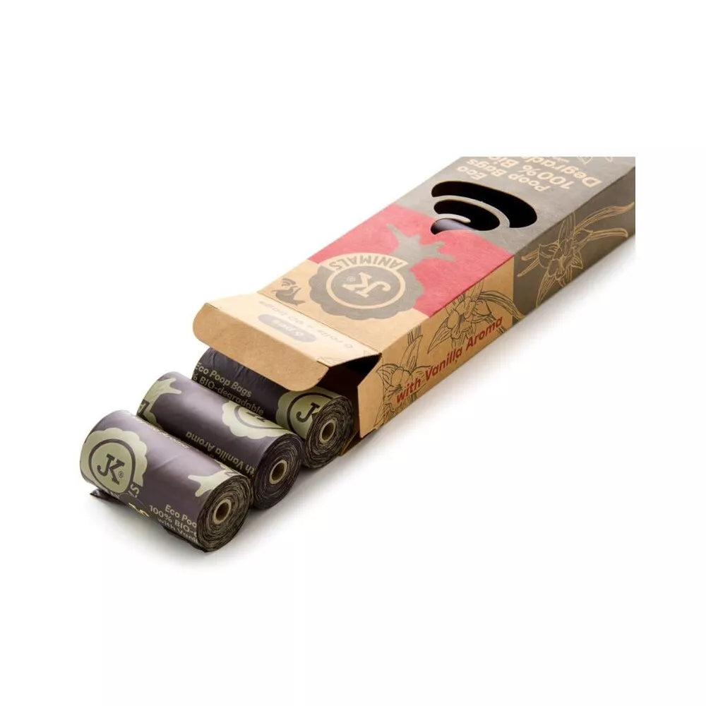 Kiekvienas maišelis yra patogaus dydžio (33 cm x 23 cm), todėl tinkamas įvairaus dydžio šunims. Jų neabejotinai vertinga savybė – malonus vanilės kvapas, kuris efektyviai neutralizuoja nemalonius kvapus pasivaikščiojimo metu, suteikdamas papildomo komforto Jums ir aplinkiniams. Specialiai suformuoti galai leidžia lengvai ir sandariai užrišti maišelį, užtikrinant higieną ir išvengiant netikėtų nutekėjimų. Tai daro tvarkymosi procesą greitesnį ir malonesnę patirtį.