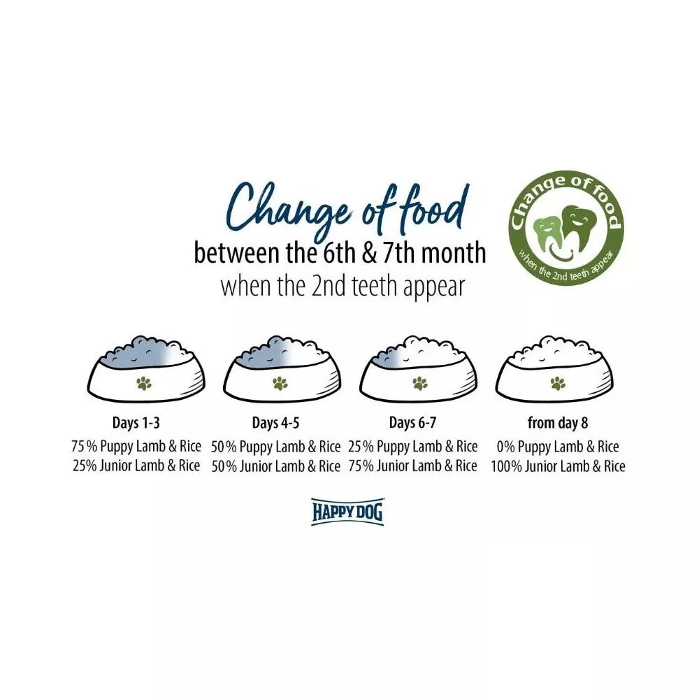 Nuo septynių mėnesių jūsų šuniukas pradeda pereiti į naują, subrendusio šuns etapą. Šiuo laikotarpiu augimo tempas natūraliai sulėtėja, todėl labai svarbu koreguoti mitybos režimą, atsižvelgiant į pakitusį energijos poreikį. Happy Dog Sensible Junior Lamb&Rice maistas specialiai sukurtas šiam gyvybiškai svarbiam vystymosi periodui. Jame optimaliai subalansuotas reikiamas energijos ir baltymų kiekis, padedantis išvengti su mityba susijusių augimo sutrikimų ir užtikrinantis jūsų keturkojo draugo subalansuotą mitybą, atitinkančią jo individualius poreikius. Tai puiki parama formuojantis stipriam skeletui ir sveikai gyvybinei jėgai.