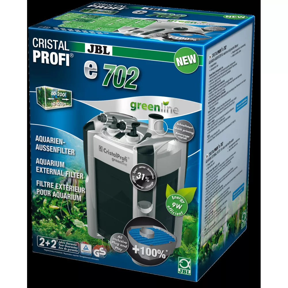 JBL CristalProfi e702 Greenline filtras sukurtas maksimaliam patogumui. „Greito paleidimo“ (QuickStart) mygtukas leidžia lengvai paruošti filtrą darbui be papildomų pastangų. Visos filtro dalys tvirtinasi lengvai ir saugiai, o patentuota žarnų jungtis apsaugo nuo netinkamo surinkimo. Komplektacijoje esančios kruopščiai atrinktos filtracinės medžiagos užtikrina efektyvų mechaninį ir biologinį vandens valymą, todėl jūsų akvariumo vanduo bus skaidrus ir sveikas. Dėl pridedamų priedų šis filtras tinkamas naudoti tiek gėlavandeniuose, tiek jūriniuose akvariumuose, suteikdamas lankstumo ir pritaikomumo įvairioms akvariumo sistemoms.