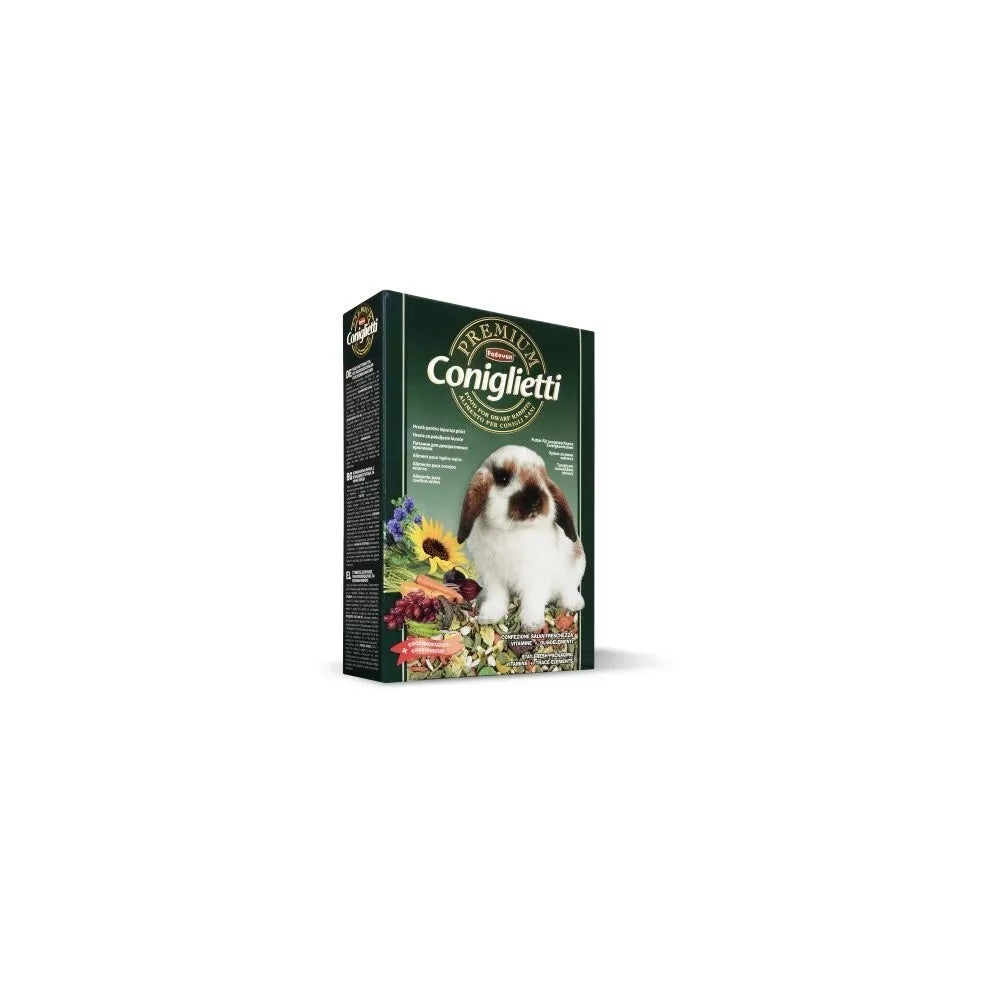 Suaugusiems triušiams skirtas „Premium Coniglietti“ pašaras pasižymi optimaliu baltymų ir ląstelienos kiekiu, kuris yra būtinas sveikai triušių mitybai palaikyti. Sudėtyje esantys vitaminai ir mikroelementai stiprina imuninę sistemą, skatina sveiką kailio augimą ir bendrą organizmo gyvybingumą. Kiekvienas komponentas atrinktas itin kruopščiai, siekiant užtikrinti, kad jūsų triušis gautų visų reikalingų maistinių medžiagų pilnaverčiam gyvenimui. Sudėtis praturtinta liucerna, vynuogėmis, saulėgrąžų sėklomis, žirniais, morkomis ir ropėmis, kurios suteikia pašarui ne tik išskirtinį skonį, bet ir papildomų maistinių medžiagų.