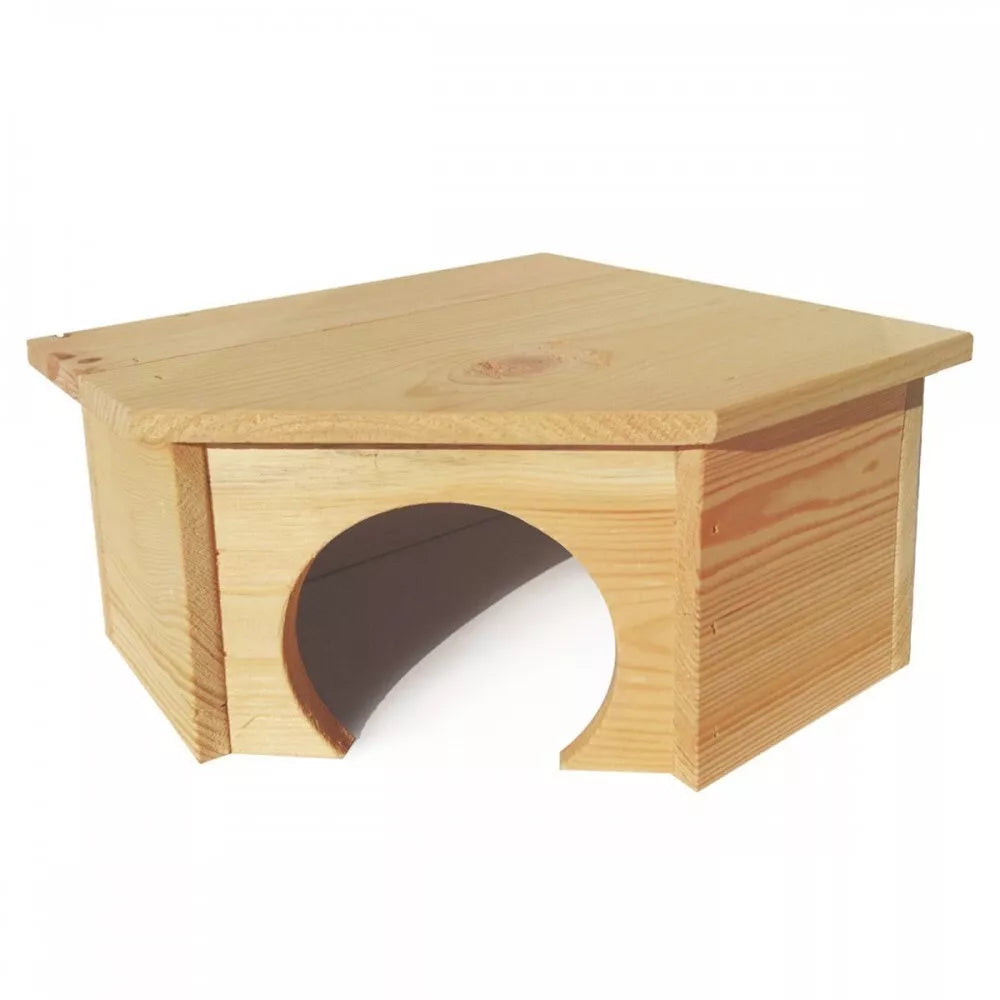 Šis medinis kampinis namelis pasižymi ne tik funkcionalumu, bet ir estetiškumu. Jo natūrali medienos spalva ir paprastas dizainas dera prie bet kokio interjero stiliaus. Tvirtos jungtys ir kokybiška mediena garantuoja, kad namelis tarnaus ilgai, atlaikydamas net aktyviausių graužikų kasdienę veiklą. Jame yra pakankamai didelis įėjimas, kad augintinis galėtų laisvai įeiti ir išeiti, o vidinė erdvė yra pakankamai erdvi poilsiui. Namelio matmenys – 16,5x11 cm, puikiai pritaikyti smulkiems graužikams.