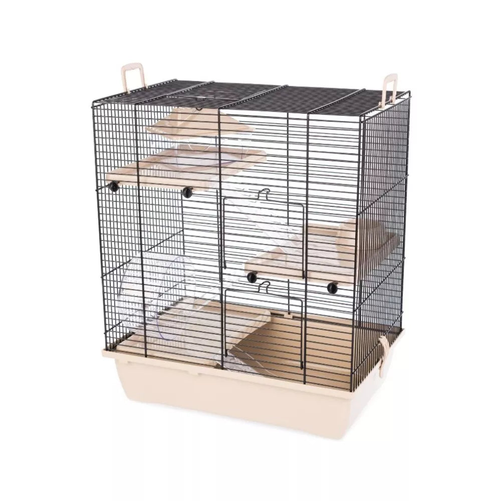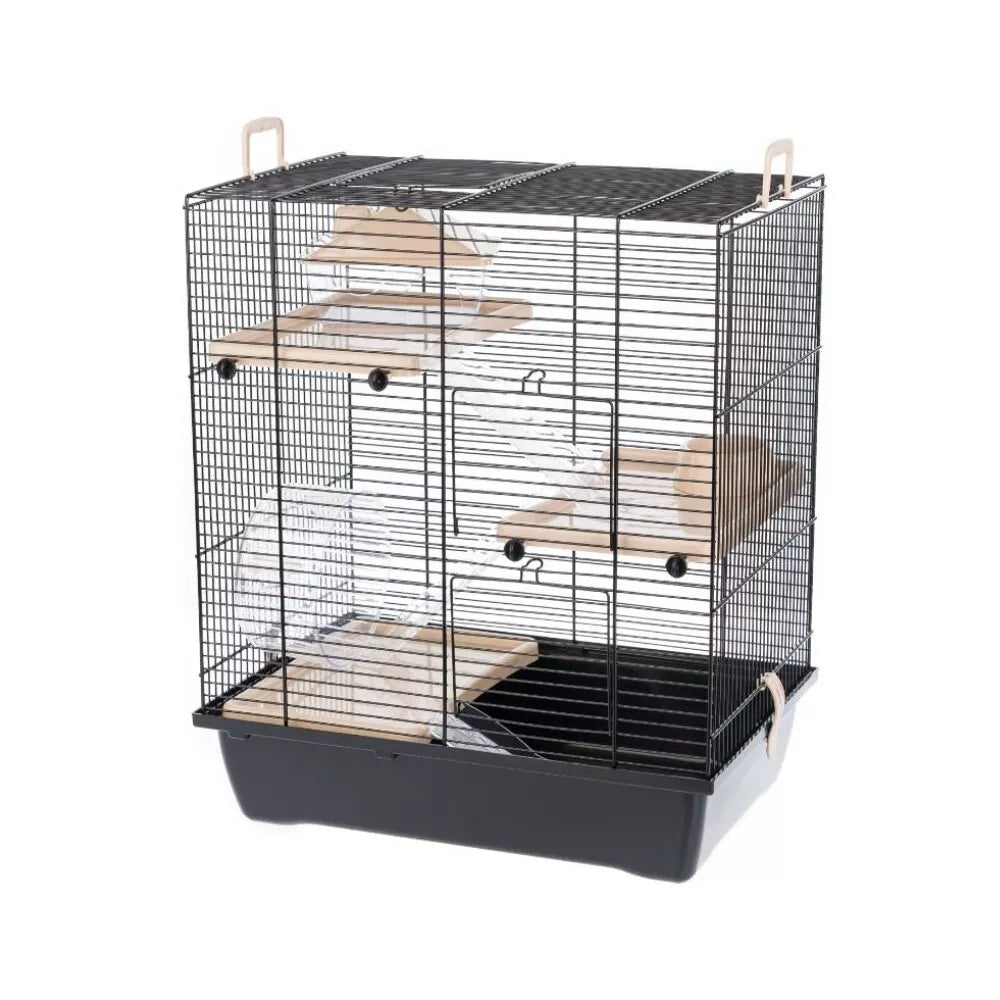 Šis narvas „Gino II“ specialiai sukurtas smulkiems graužikams, tokiems kaip žiurkėnai, voveraitės ar kiti panašaus dydžio gyvūnėliai. Trijų aukštų dizainas leidžia augintiniui judėti skirtingais lygiais, taip skatinant jo natūralų elgesį ir palaikant fizinę formą. Narvas komplektuojamas su visais būtiniausiais priedais, kad jūsų augintinis iškart jaustųsi kaip namuose: yra tvirtas plastikinis ratukas aktyviam laisvalaikiui, jaukus namelis ramiam poilsiui ir miegui, bei patogus dubenėlis maistui ar vandeniui.