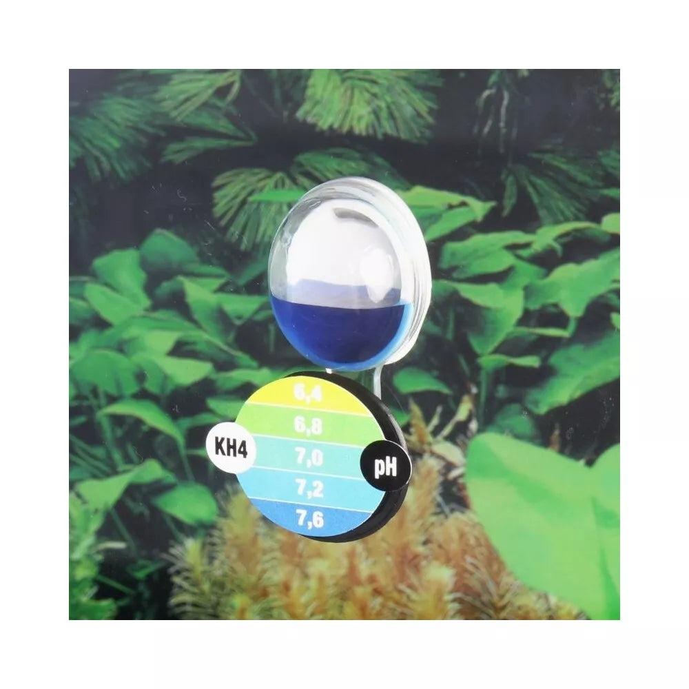 Šio testo veikimo principas yra paprastas: įspecialų indelį, kuris tvirtinamas prie akvariumo stiklo naudojant siurbtukus, įpilamas specialus reagentas. Šis reagentas nuolat analizuoja akvariumo vandenyje esantį CO2 kiekį. Iš vandens išsiskiriantis CO2 patenka į indelyje esančią oro kolonėlę, susimaišo su indikatoriniu skysčiu, ir taip pakeičia jo spalvą. Vėliau, palyginus reagentų spalvą su pridedama spalvų skalės lipduku, galima tiksliai nustatyti pH vertę (nuo 6,4 iki 7,8) ir CO2 koncentraciją. Tai leidžia lengvai sekti, ar Jūsų akvariumo vanduo atitinka reikiamus parametrus, svarbius tiek augalų augimui, tiek žuvų gerovei.