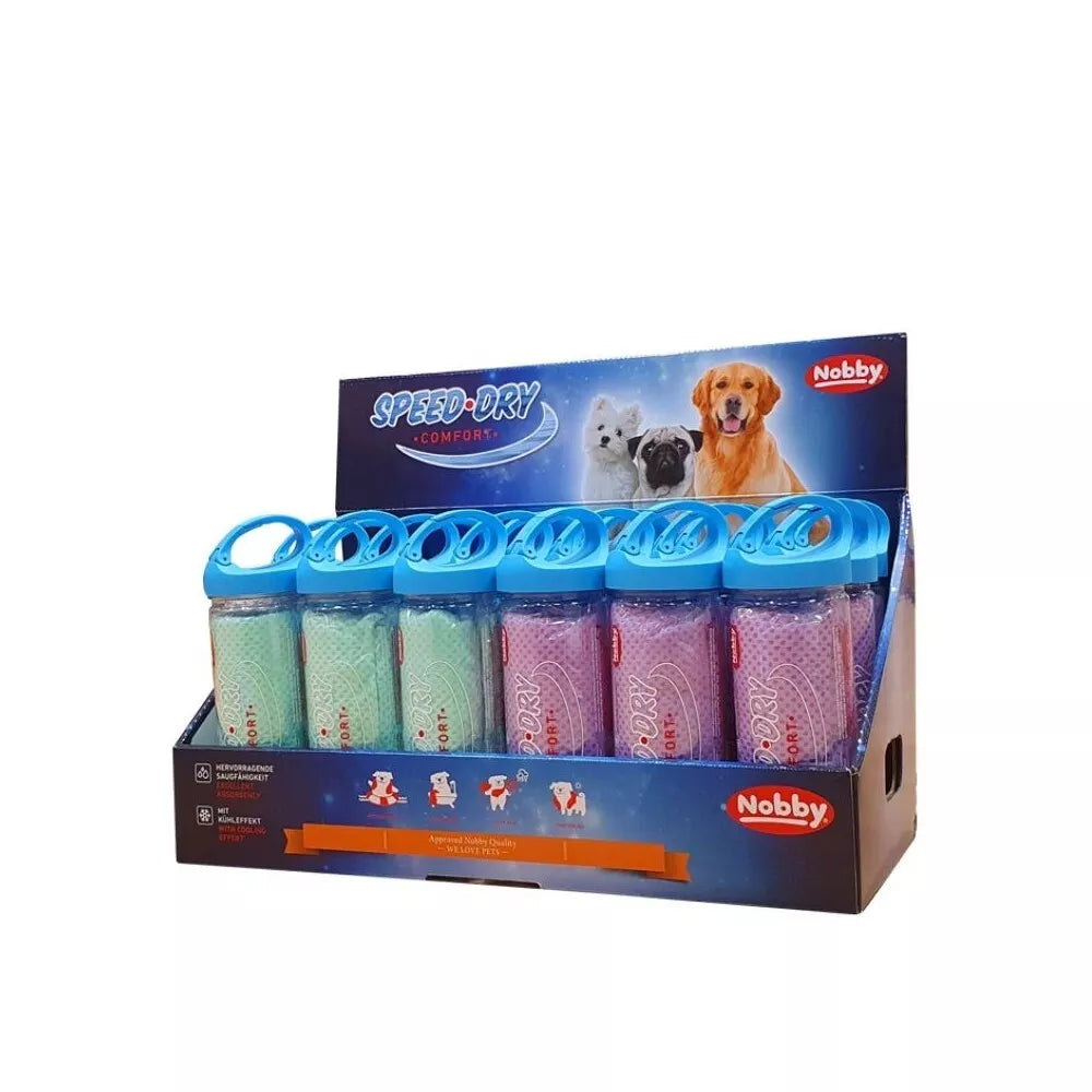 Pamirškite ilgus ir varginančius jūsų augintinio kailio džiovinimo procesus! "Speed Dry Comfort" rankšluostis – tai revoliucinis sprendimas kiekvienam šunų šeimininkui. Sukurtas atsižvelgiant į jūsų keturkojo draugo poreikius, šis rankšluostis užtikrina ypatingai greitą ir efektyvų drėgmės absorbavimą. Pagamintas iš aukščiausios kokybės 95% PVA medžiagos, jis pasižymi išskirtinėmis sugeriamumo savybėmis, o išgręžtas vėl veikia kaip naujas, paruoštas sugerti dar daugiau drėgmės. Jo dėka jūsų augintinis greitai taps sausas po maudynių, aktyvių žaidimų lauke ar po netikėto lietaus susitikimo.