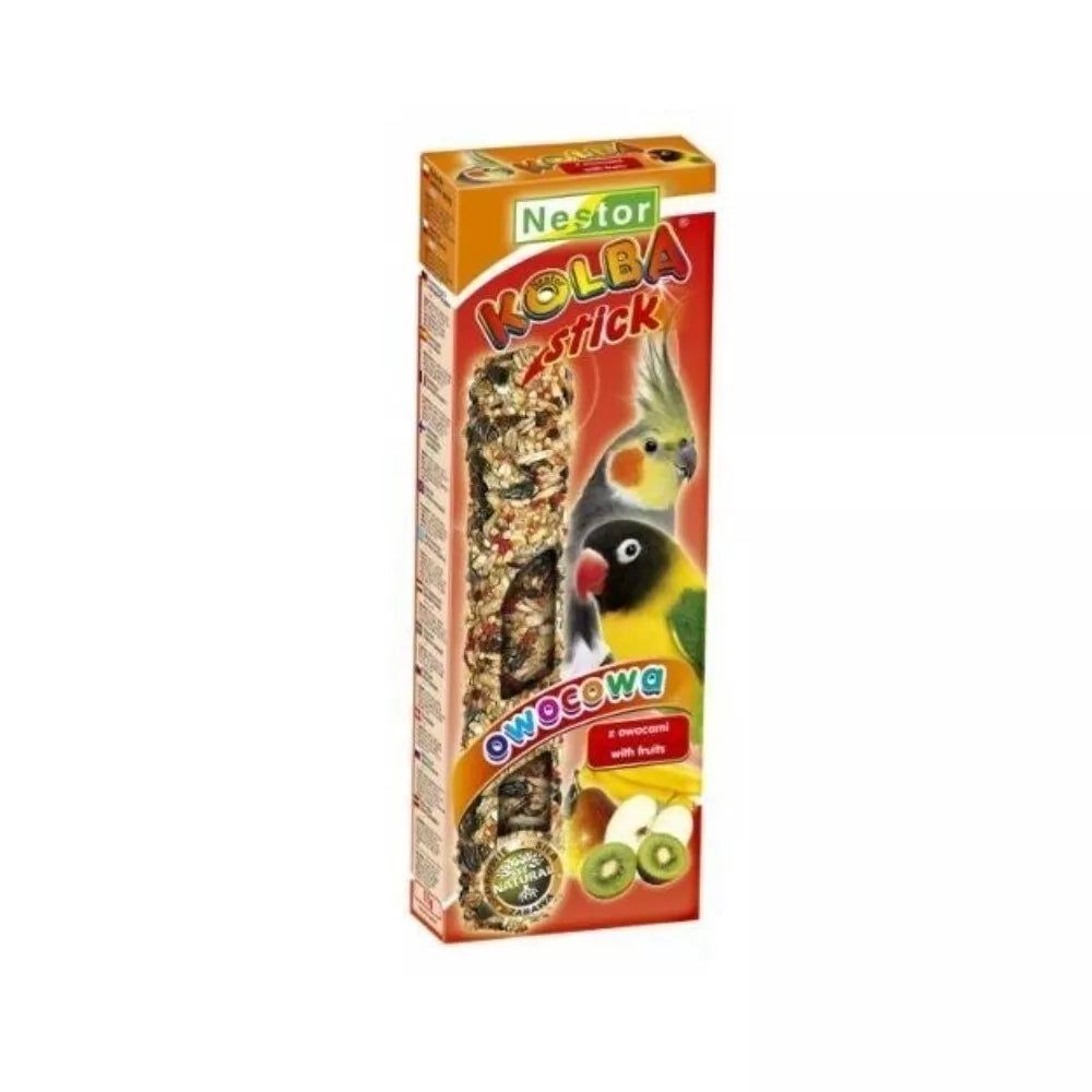 Ieškote būdo praturtinti Jūsų vidutinės papūgos mitybą ir suteikti jai daugiau džiaugsmo? Mūsų skanėstas su vaisiais yra puikus pasirinkimas! Sukurtas atsižvelgiant į natūralius paukščių poreikius, šis skanėstas ne tik papildys augintinio racioną vitaminais, mineralais ir mikroelementais, bet ir taps smagiu užsiėmimu. Kietas medinis pagrindas yra specialiai paruoštas taip, kad Jūsų paukštis galėtų natūraliai šlifuoti ir prižiūrėti savo snapą, užkertant kelią jo peraugimui. Tai dviguba nauda viename produkte: maistingas papildas ir stimuliuojantis žaislas, skatinantis aktyvumą ir gerą savijautą. Lengvai pakabinamas bet kurioje narvo vietoje, šis skanėstas leis Jūsų augintiniui mėgautis maistu taip, kaip gamtoje – kandžiojant ir atskiriant skanėją nuo pagrindo.