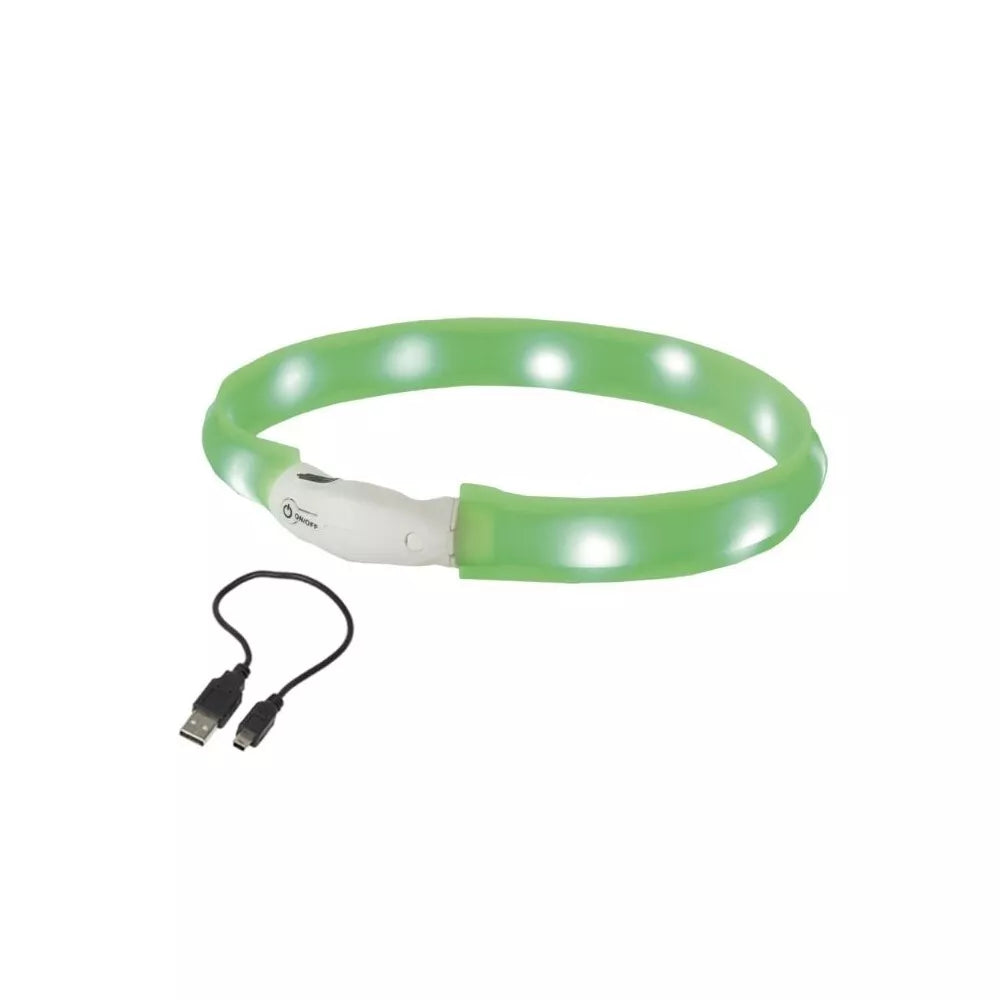 Užtikrinkite savo keturkojo draugo saugumą tamsiuoju paros metu su šviečiančiu LED antkakliu Visible M. Šis ryškiai žalios spalvos, 25 mm pločio ir 55 cm ilgio antkaklis sukurtas taip, kad jūsų šuo taptų lengvai pastebimas net esant prastam apšvietimui ar visiškai tamsoje. Pagamintas iš kokybiško, lietui atsparaus silikono, jis puikiai apsaugo nuo drėgmės ir yra patvarus kasdieniam naudojimui. Antkaklio ilgis yra reguliuojamas – jį galima lengvai sutrumpinti pagal jūsų šuns kaklo dydį, todėl jis puikiai tiks tiek mažesniems, tiek didesniems veisliniams šunims, ypač turintiems ilgesnį ar tankesnį kailį.