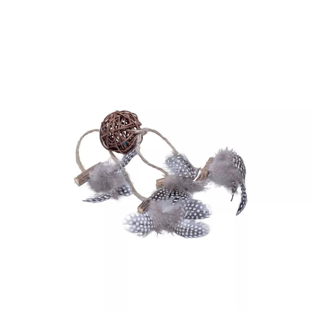 Kamuoliukas yra idealiai pritaikytas katės letenėlėms – jį lengva stumdyti, mėtyti ir gaudyti. Ryškiaspalvės, švelnios plunksnos ne tik patraukia katės dėmesį, bet ir suteikia jai stimuliavimo, primindamos grobį. Tai puikus būdas atitraukti katę nuo nuobodulio ir paskatinti ją judėti, net kai jūsų nėra šalia. Žaislas skatina vikrumą ir reakcijos laiką.