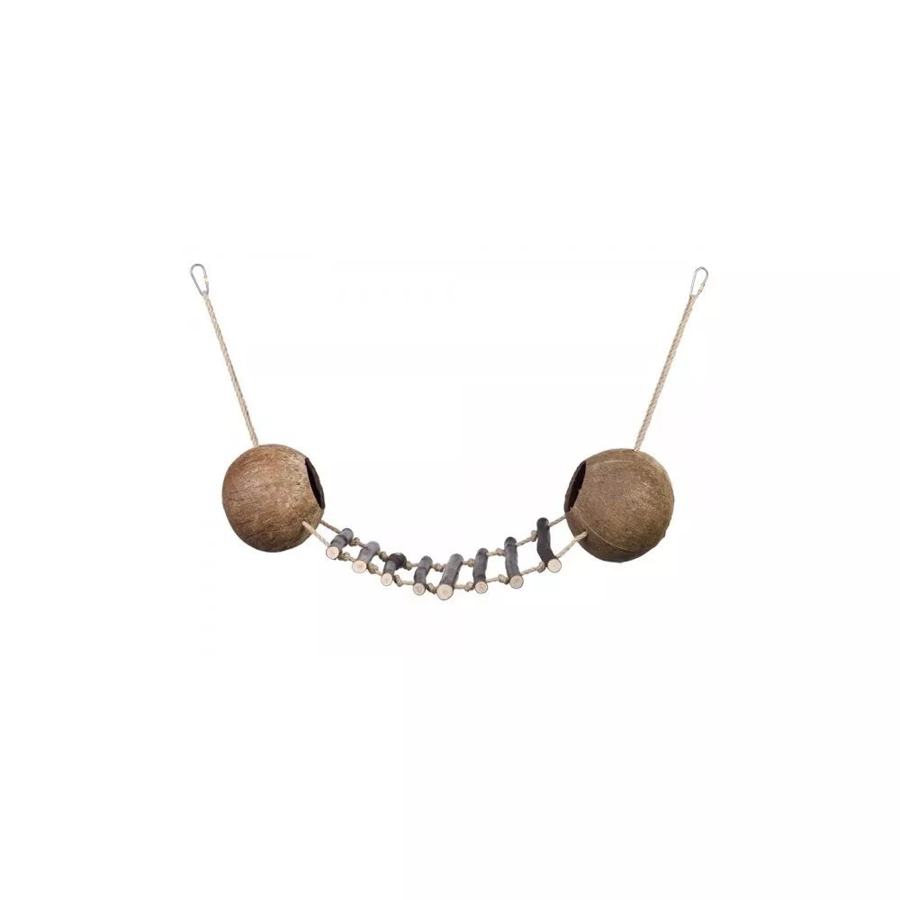 Šis ilgas ir tvirtas tiltas yra ne tik smagus aktyvumui, bet ir pasižymi išskirtine ypatybe – jame integruoti du natūralūs kokoso lukštai. Kiekvienas kokosas gali tapti jaukia slėptuve, saugia vieta susisukti lizdui arba tiesiog ramia poilsio zona. Tai suteikia gyvūnams jausmą saugumo ir privatumo, leidžiant jiems atsipalaiduoti ir jaustis ramiau savo aplinkoje. Natūralios medžiagos skatina natūralų elgesį.