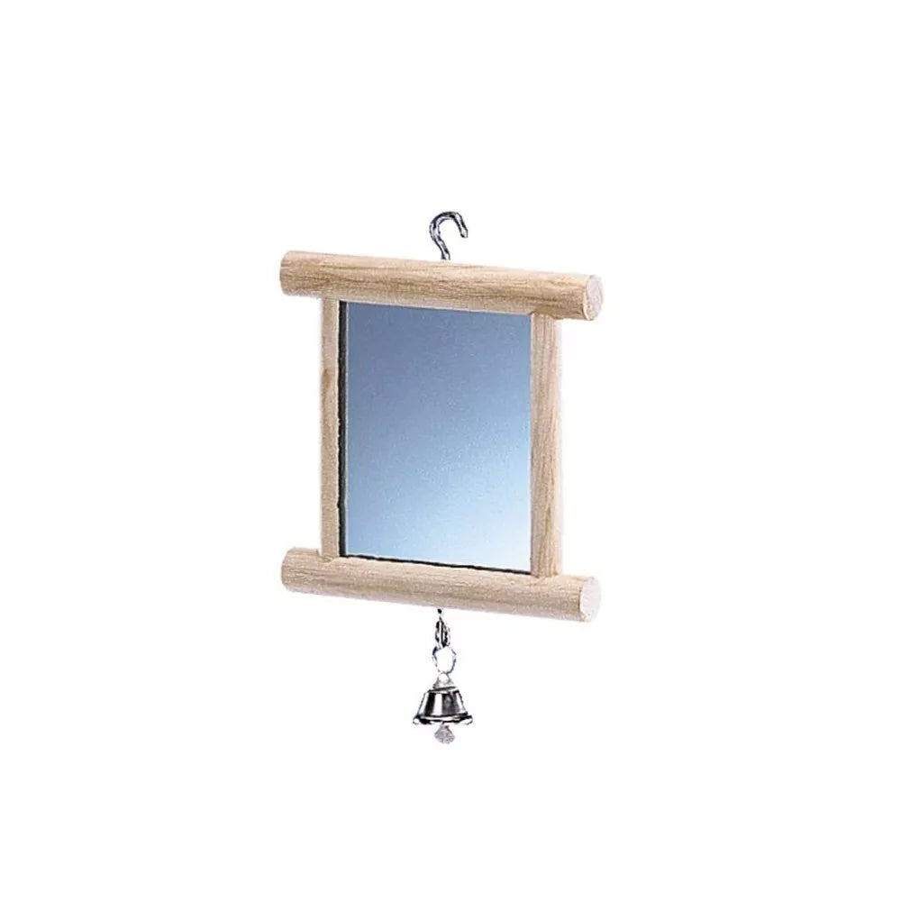 Šis žaislas yra sukurtas siekiant paskatinti jūsų paukščio fizinį ir protinį aktyvumą. Papūgos ir kiti protingi paukščiai reikalauja nuolatinės stimuliacijos, kad išvengtų nuobodulio ir streso. Veidrodėlis leis paukščiui stebėti savo atvaizdą, kas gali būti itin smagu ir įdomu, ypač jei jis yra vienišas. Skambantis varpelis suteikia papildomą garsinę stimuliaciją, o skirtingų tekstūrų mediena leidžia paukščiui ją kramtyti ir apčiupinėti, tenkinant natūralius instinktus. Tai puiki priemonė užimti paukštį ilgesniam laikui, skatinant jo natūralų smalsumą ir tyrinėjimo polinkį.